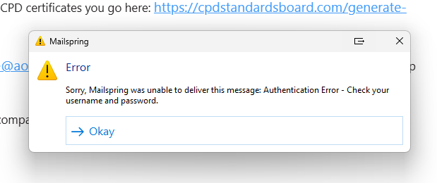 I keep getting this error on all my email addresses. To the point where I’ve had to move back to EMClient. I’ve no idea if this is the correct area to get help for this but I can’t send email from any account on Mailspring.