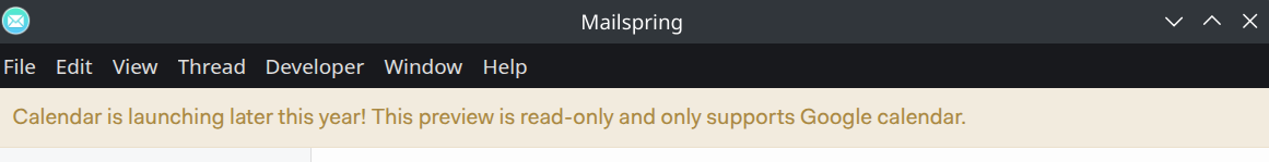 I really love using MailSpring and want to make it my daily driver. But, one big downside is the lack of a calendar app. I see that a preview version is available for Google Calendars only although I use Outlook to manage my calenar.
