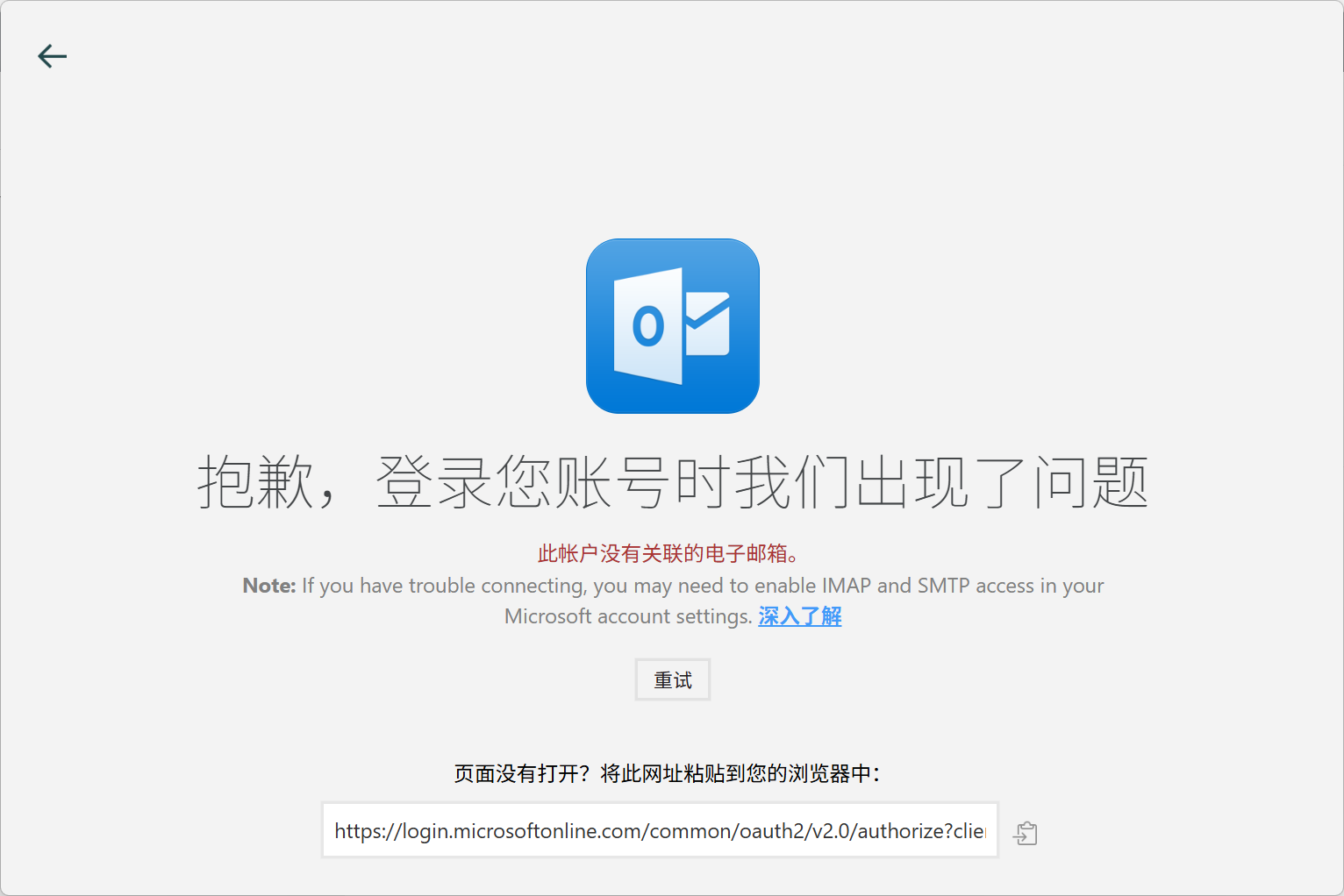 After completing the Microsoft sign-in flow in your browser and granting permissions, Mailspring may display: