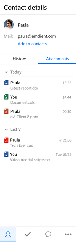 Also, implement an “all attachments” view so you can scan through all attachments regardless of sender. This is implemented by emClient, Mailbird and Thunderbird.