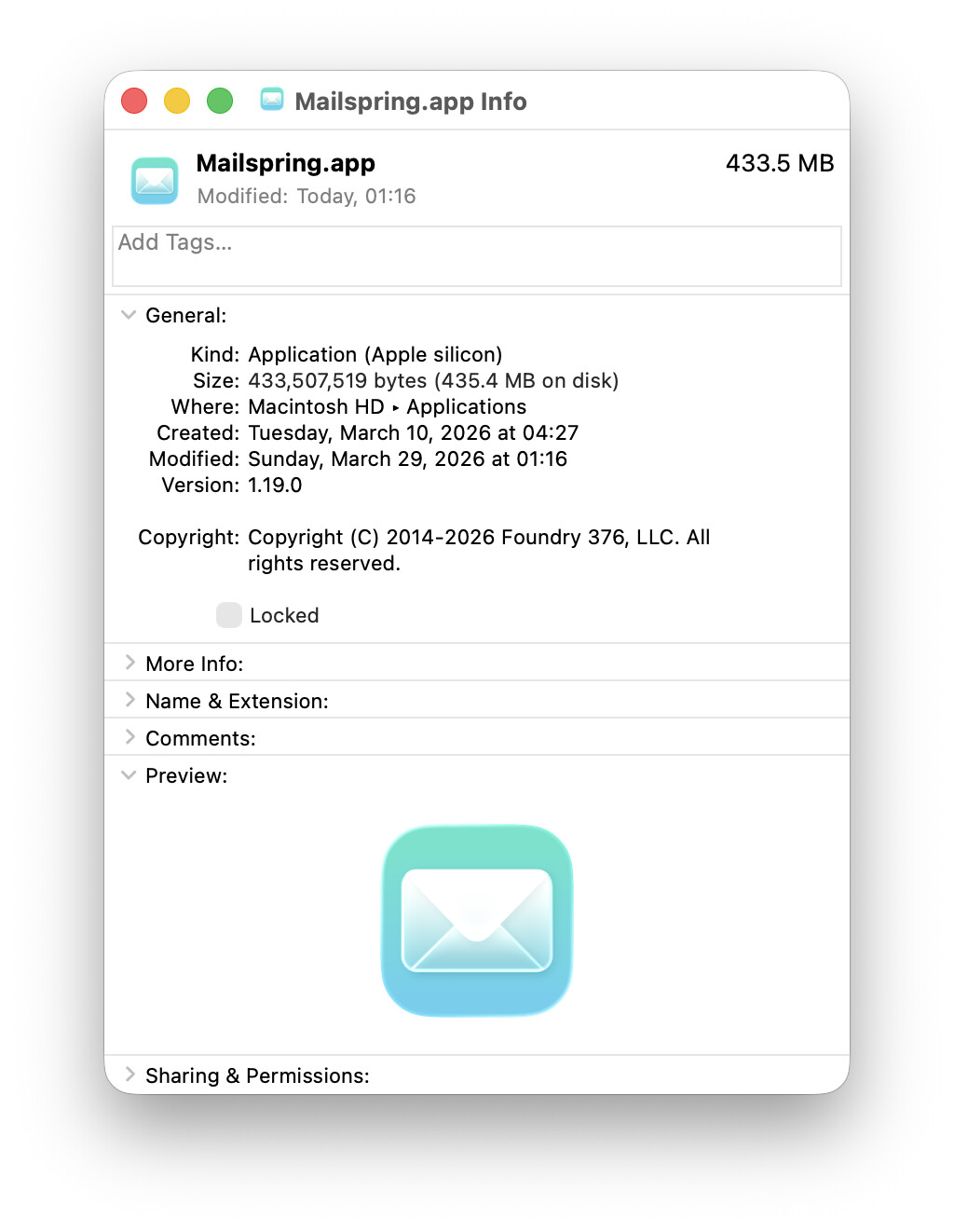 To apply it, open the Mailspring app info and drag the icns file into the icon spot.